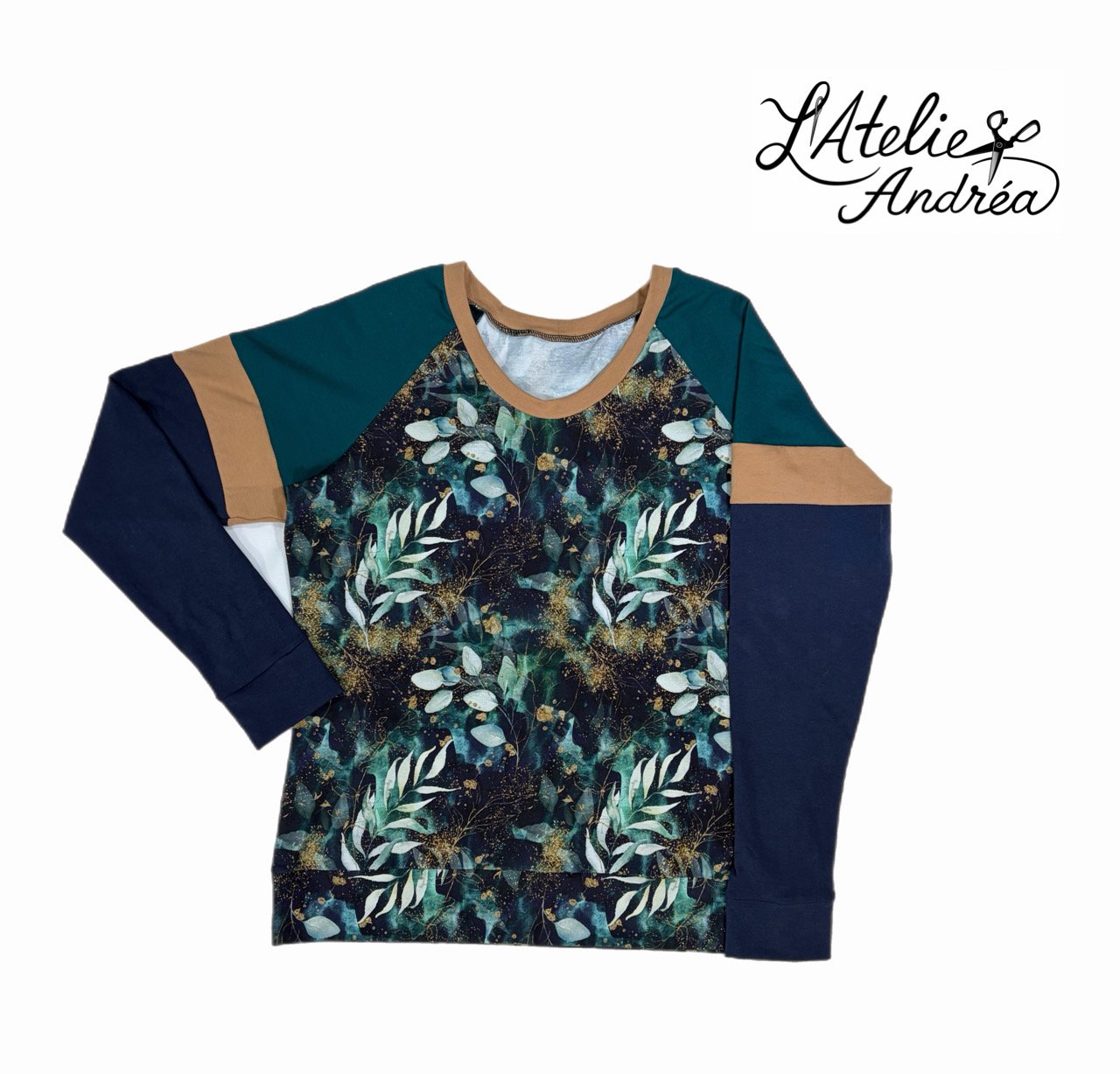 Chandail confortable à la fois simple et qui peut se démarquer des autres selon les tissus. Plusieurs combinaisons de tissus sont possible et c'est ce qui fait la beauté de ce modèle! Pour un look de tous les jours ou pour une occasion tout en restant à l'aise. * Possibilité de commander sur mesure et tissus sur demande en écrivant un courriel directement sur ce site ou en écrivant un message via la page Facebook L'Atelier Andréa/ cours de couture et créations.