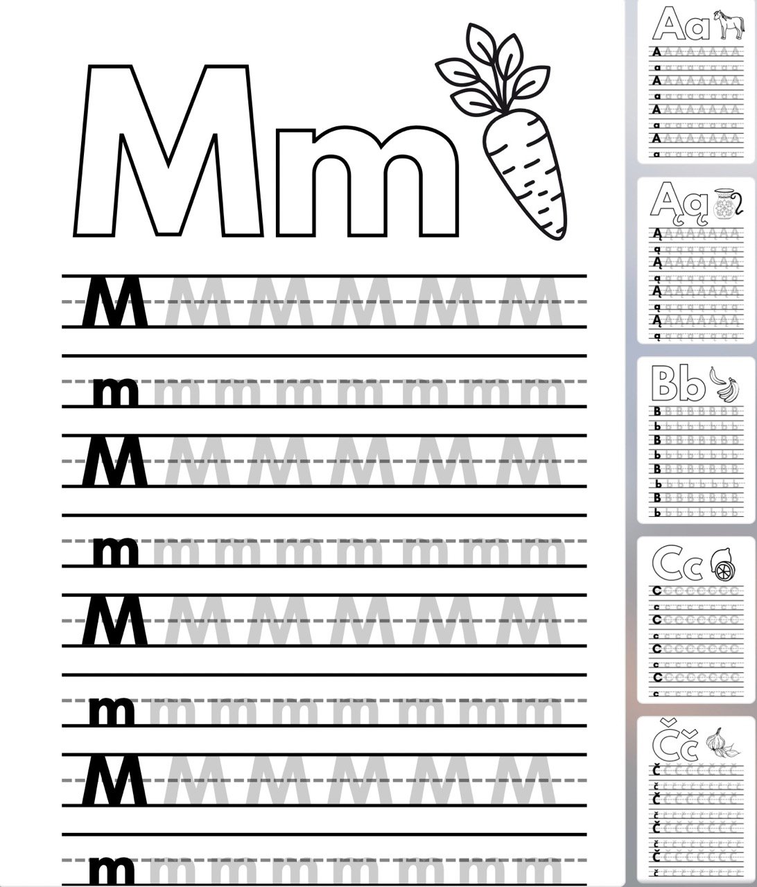 Kiekvienai raidei skirtas atskiras puslapis, kuriame vaikai galės mokytis atpažinti ir rašyti tiek didžiąsias, tiek mažąsias raides, jas spalvinti ir susieti su atitinkamais žodžiais.