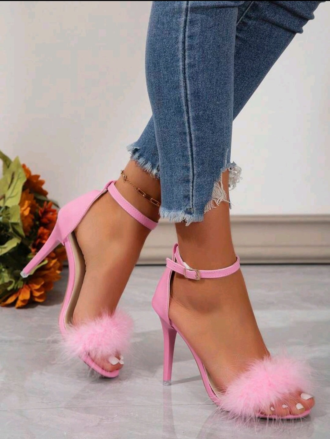 New Elegant Sexy Fashionable Casual Nightclub Anti-Slip Versatile Fuzzy Women High Heels Sandals