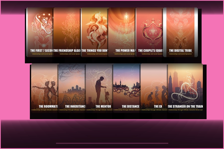 This 12-book bundle brings together the full series exploring the full spectrum of human connection: from the crackling tension of a stranger on a train to the quiet weight of inheritance, from digital communities to the mathematics of lasting partnerships. Each title stands alone, yet together they form an unmatched roadmap to understanding how people relate, influence, and connect.