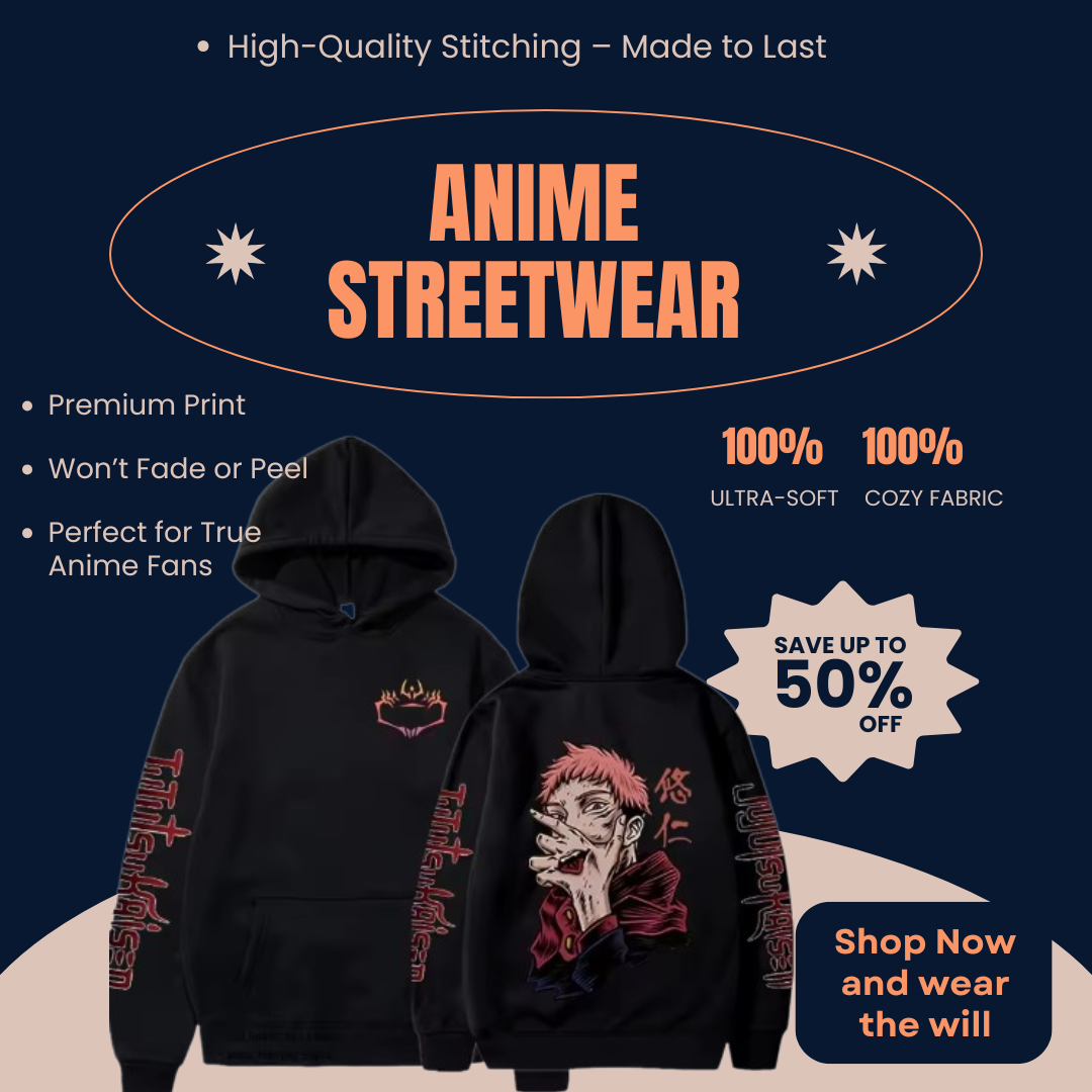 Show your love for Jujutsu Kaisen with our ultra-soft Yuji and Sukuna anime hoodie! Featuring high-quality print that won’t fade, cozy fabric, and bold streetwear style – perfect for true anime fans.