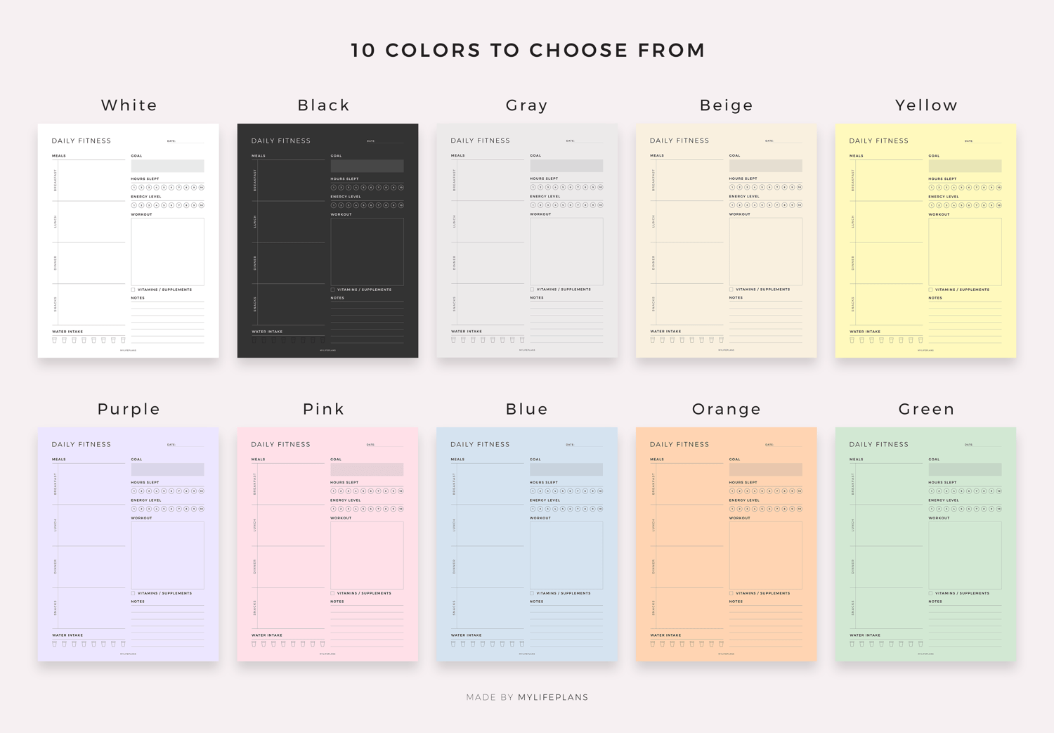 • 10 color options: White, Gray, Black, Beige, Yellow, Purple, Pink, Blue, Orange, Green