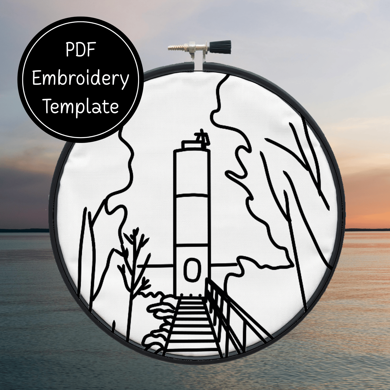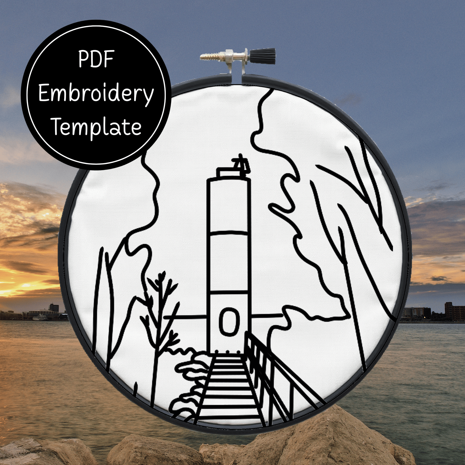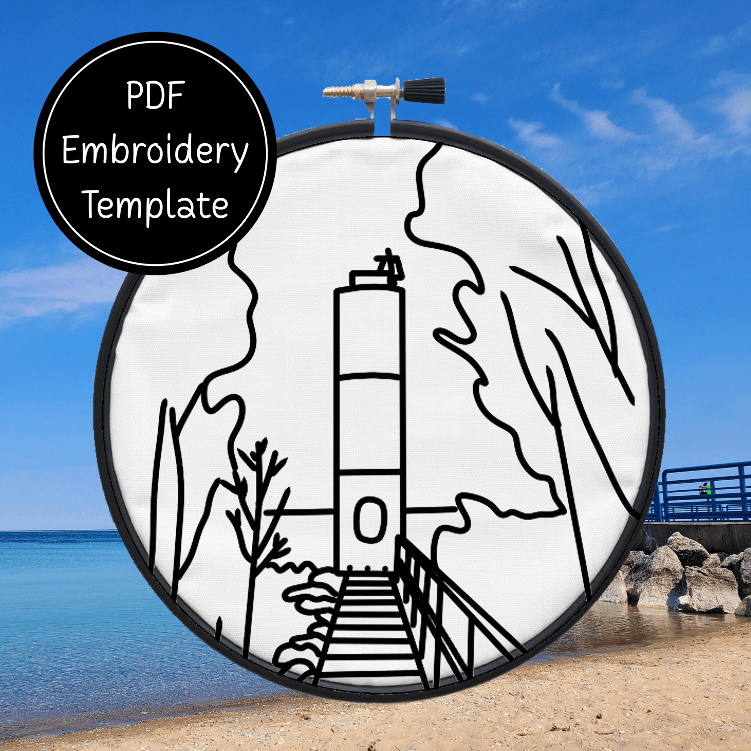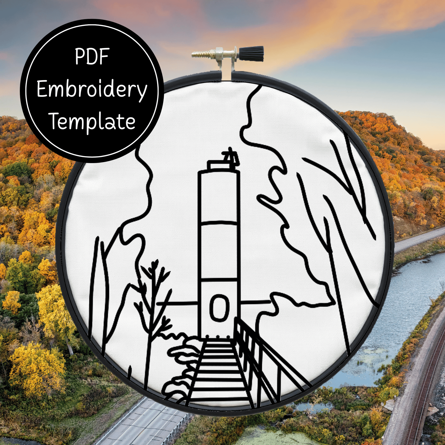 Au Gres Lighthouse Embroidery Template PDF - DIY Michigan Design For Hand Stitching - Instant Download