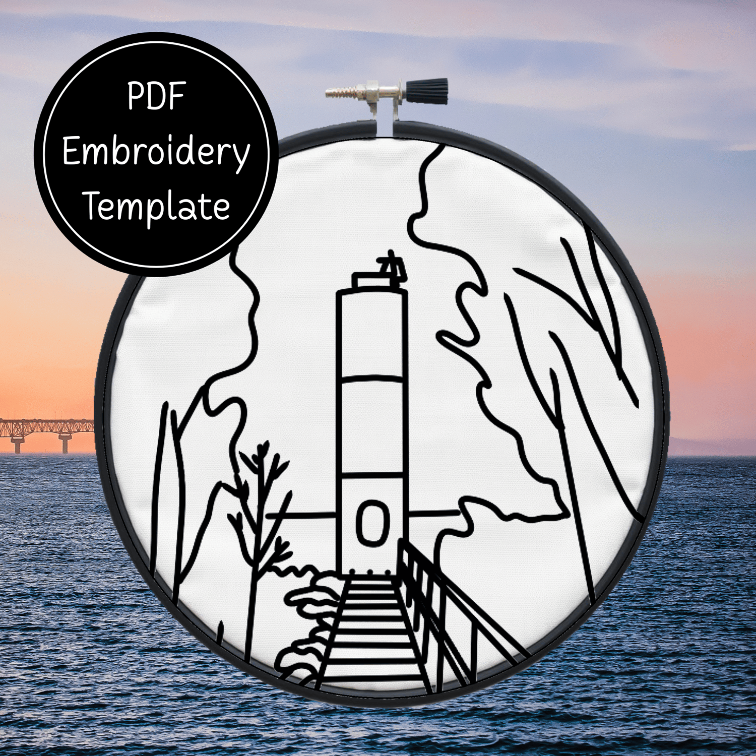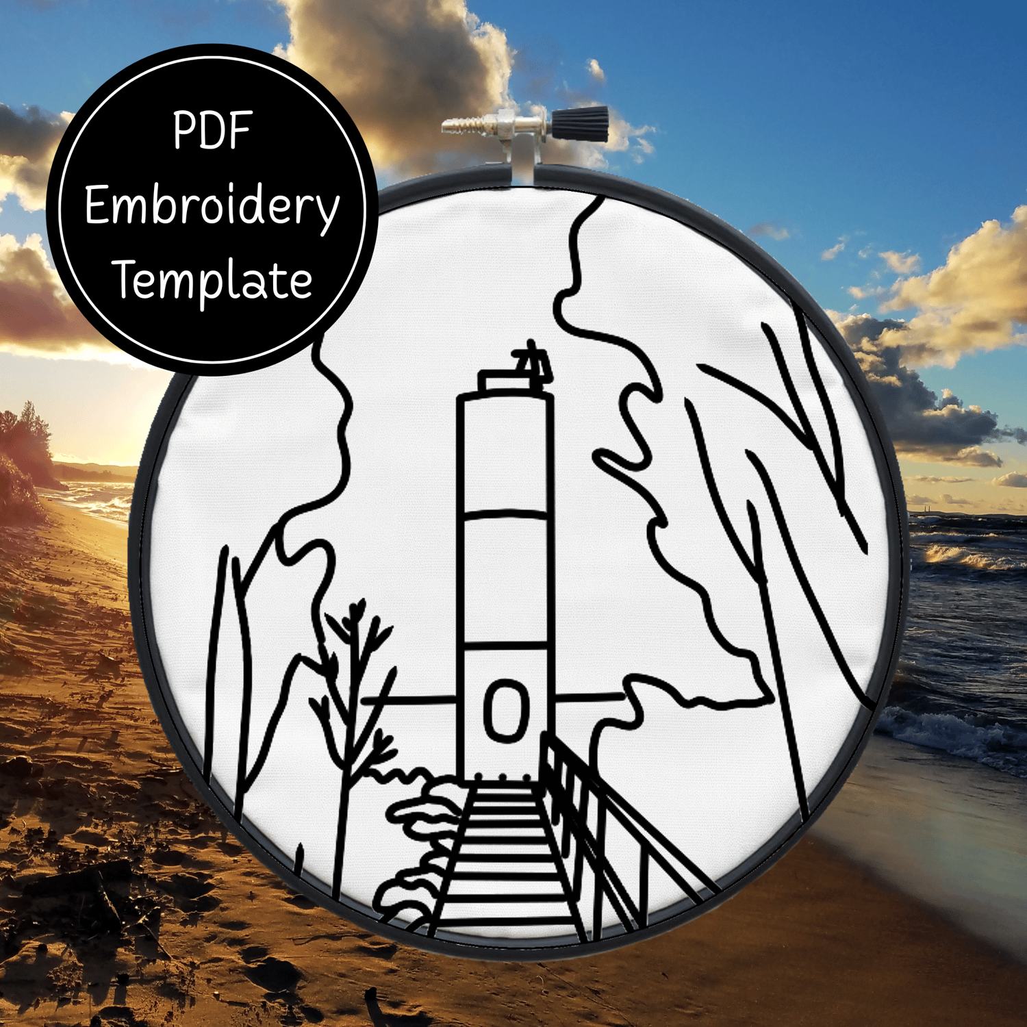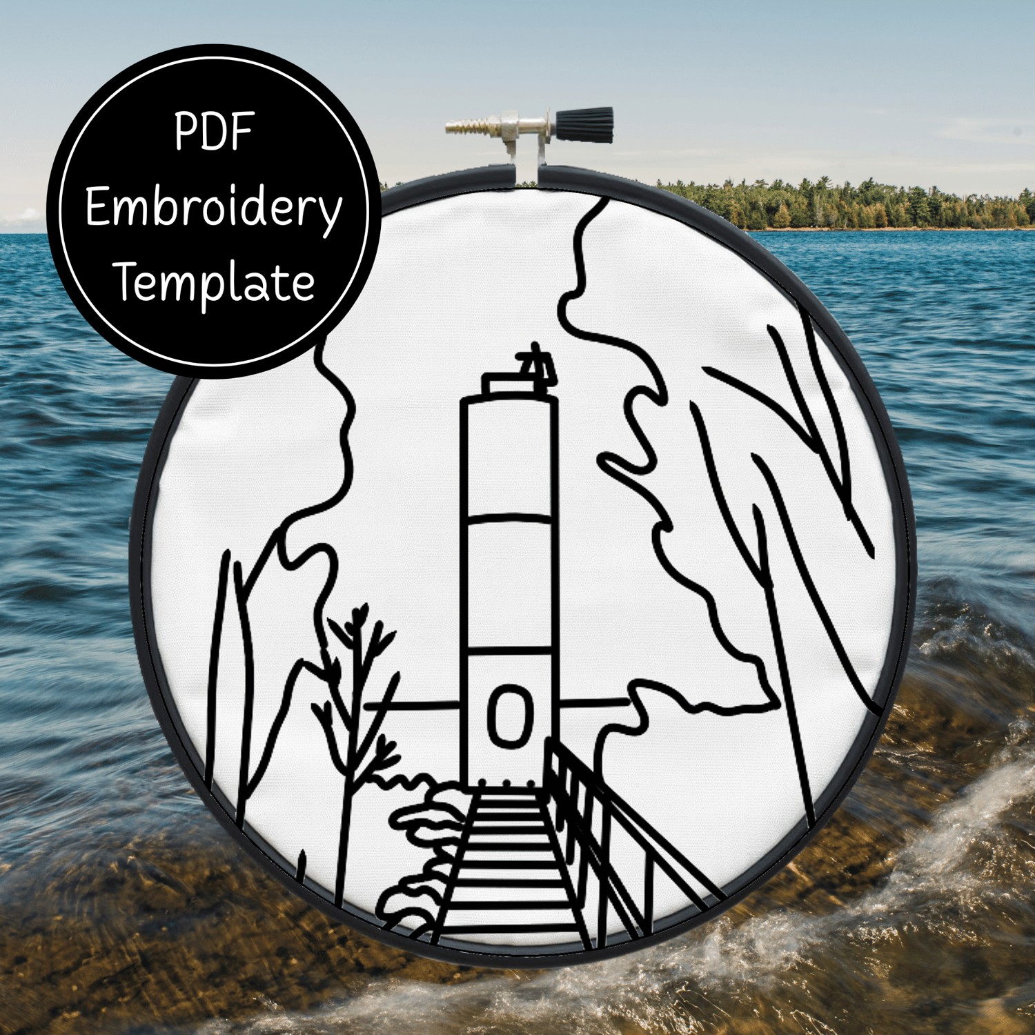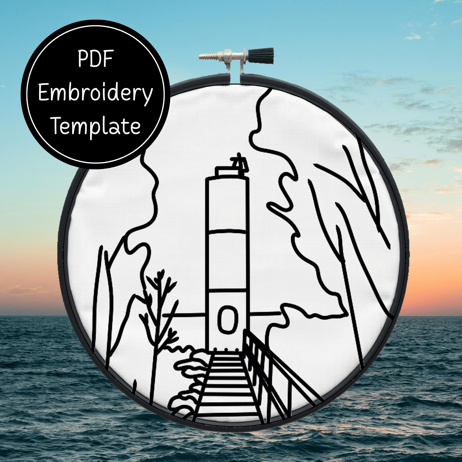 Au Gres Lighthouse Embroidery Template PDF - DIY Michigan Design For Hand Stitching - Instant Download