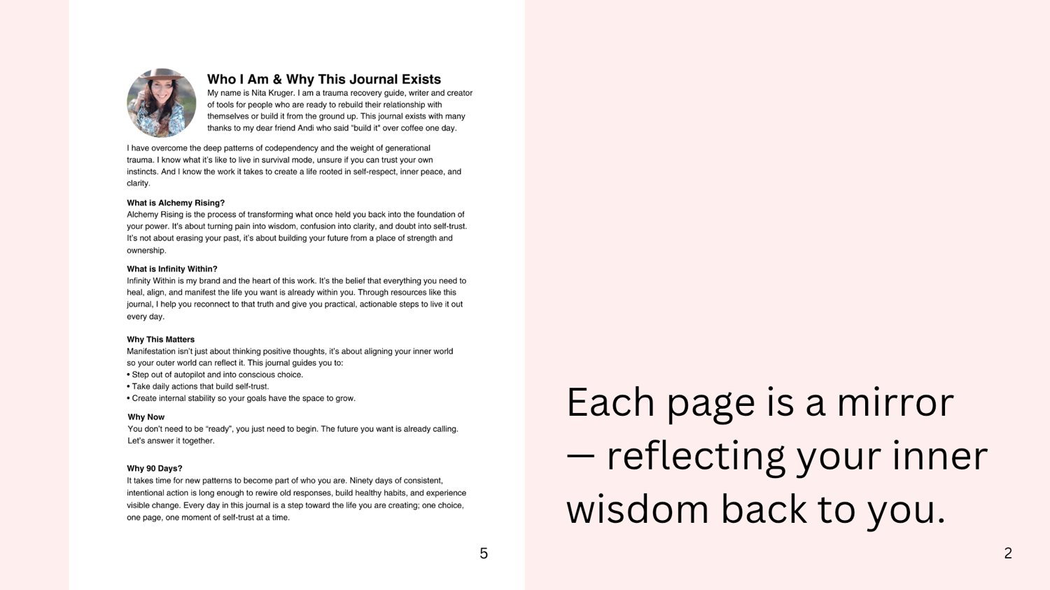 - 90 Days of Unique Daily Journal Prompts - bite-sized reflections to help you uncover hidden beliefs and realign with your truth.