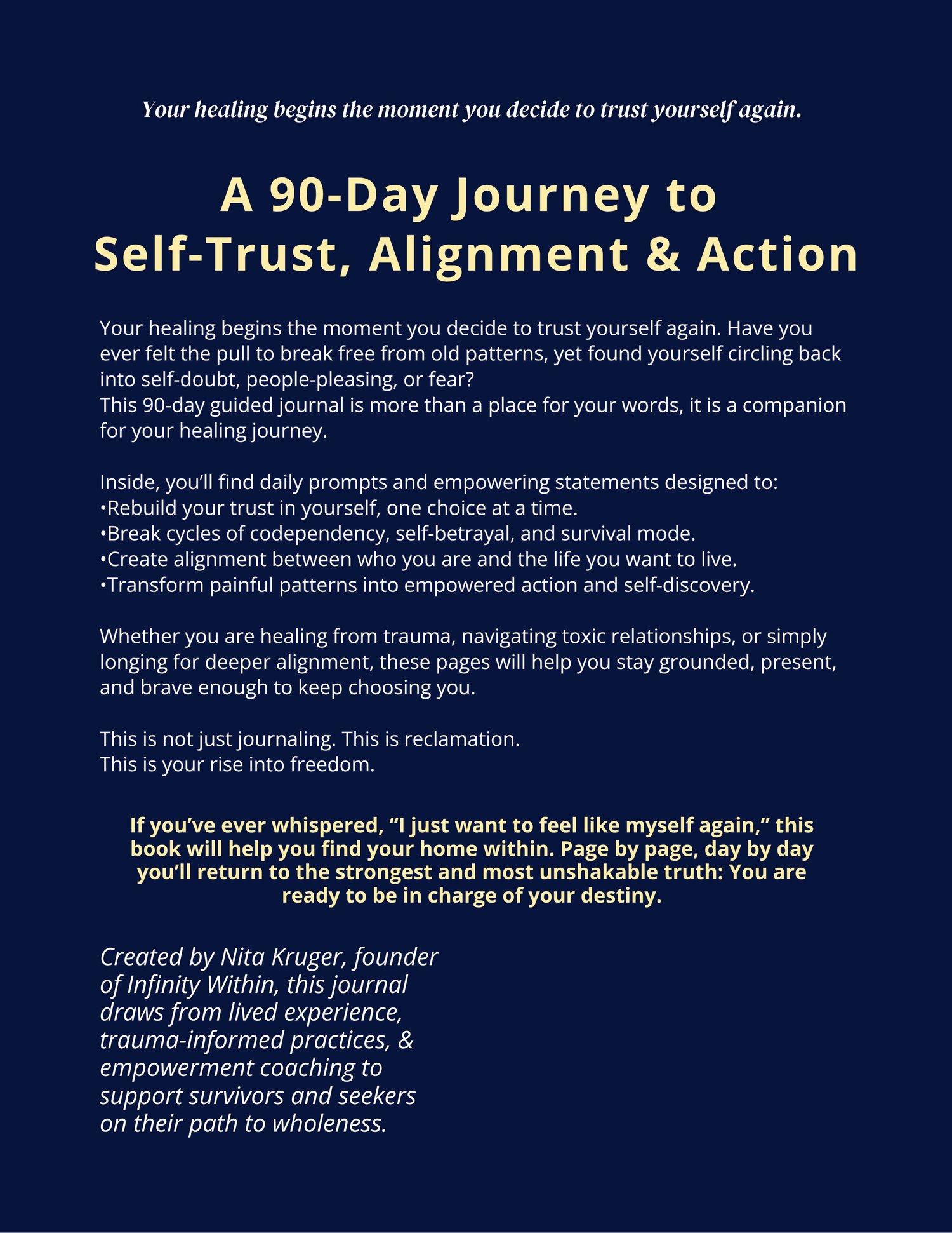 This is a self-help tool created to support your healing and growth journey. It is not a substitute for therapy, medical care, or crisis support. What you put into this process is what you will get out of it. Results may vary.
