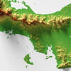 PRINTABLE map or poster of PANAMA topographic relief shaded map in 5 (five) hypsometric tinted styles.