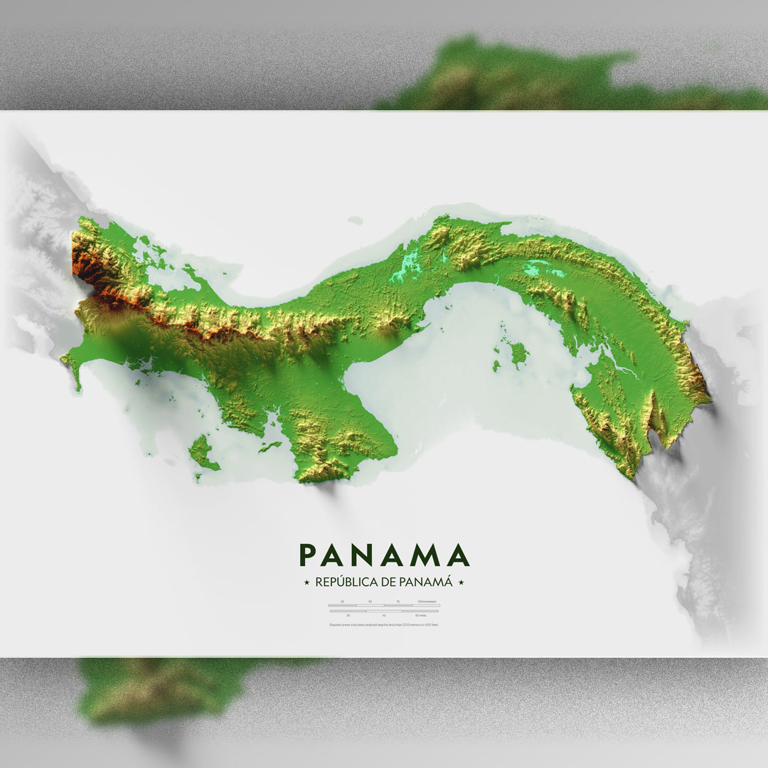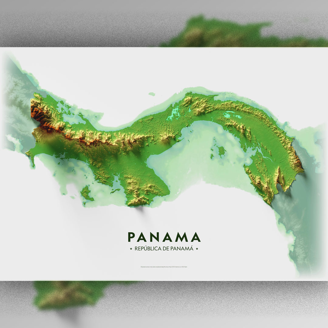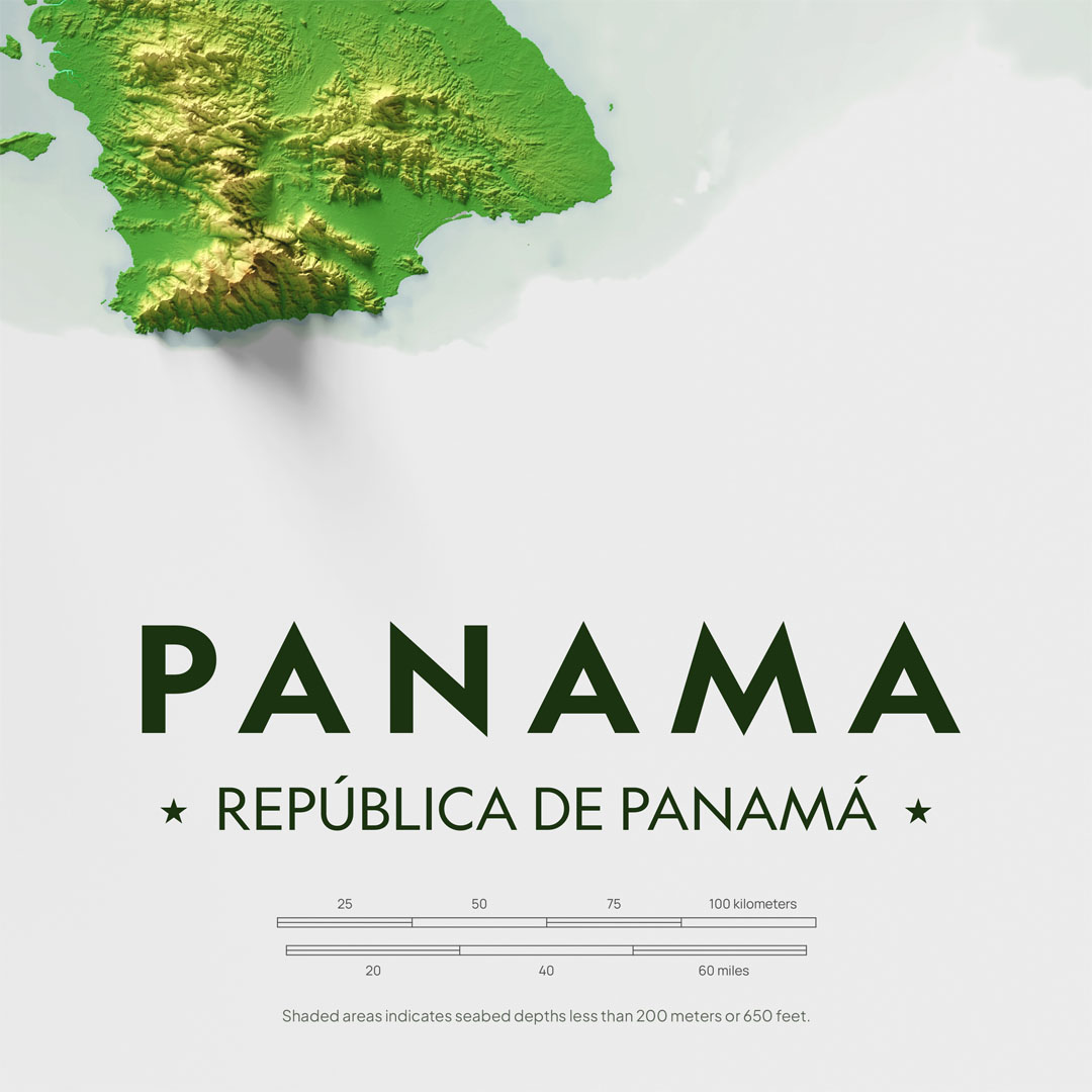 PANAMA topographic relief map printable poster, 5 styles in hypsometric tints