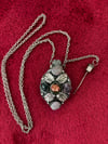 Measures: 2 1/4" x 1 3/4". Length of the chain 14 1/4".