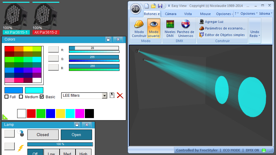 Esta Librería SSL2 está optimizada para trabajar con Magic 3d Easy View. Es decir para ver una representación 3D de las secuencias que estemos realizando con Freestyler, QLC+ o cualquier otro soft que se conecte con Magic 3d.