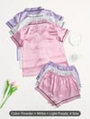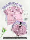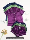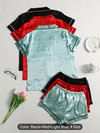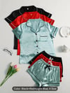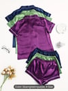 Women's 3pcs Satin Clothing Set - Comfy Short Sleeve Button-Up Top & Bow Detail Shorts, Solid Color Clothing