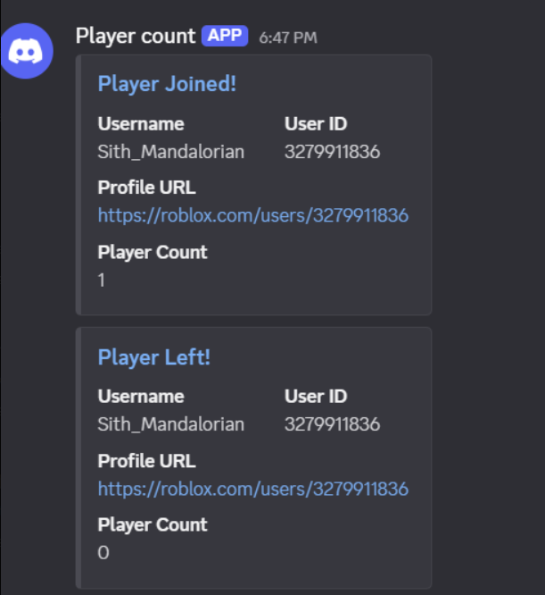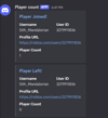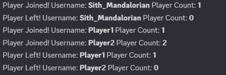 Looking for a product that will tell log when someone joins and game or leaves? Want a active number with that as well? Can't decide between a embed message or single line? Perfect system for you! Easy to change if you would like.