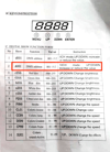 * En el modo "A001" (con A) verifique, con un Fixture de pruebas (click), que coincidan estos canales: 1 Dimmer, 7 UV (luz negra), 8 Strobo.