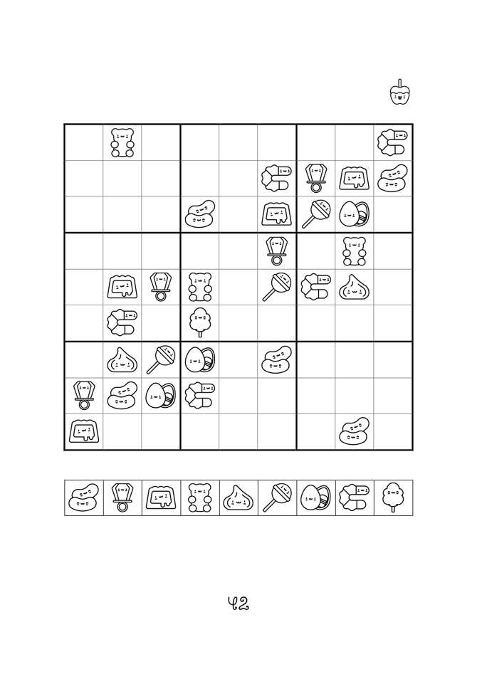 Well, this sweets themed colour in Sudoku book is perfect for you. You will find: