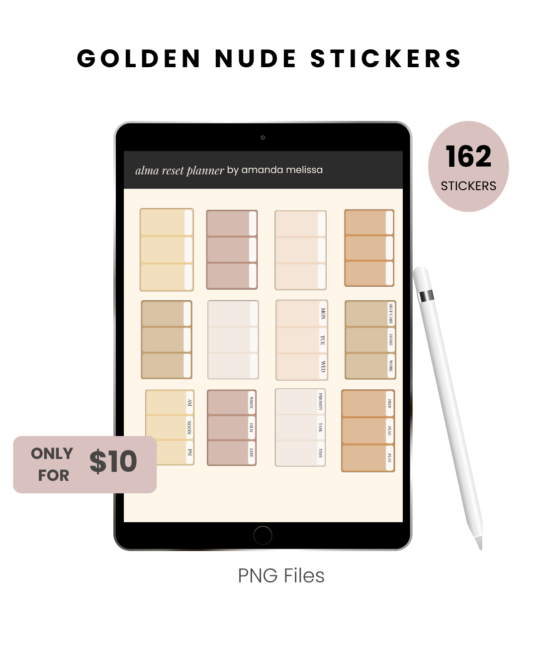 Golden Nude Color 162 PNG Digital Stickers. Use in your preferred note-taking app.