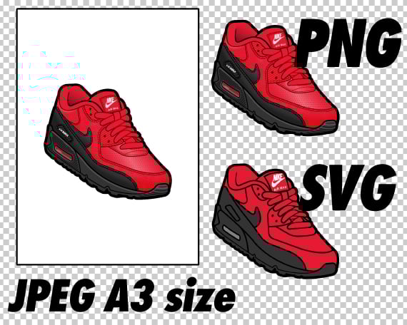Air Max 90 Speed Red JPEG PNG SVG Digital Sneaker Art