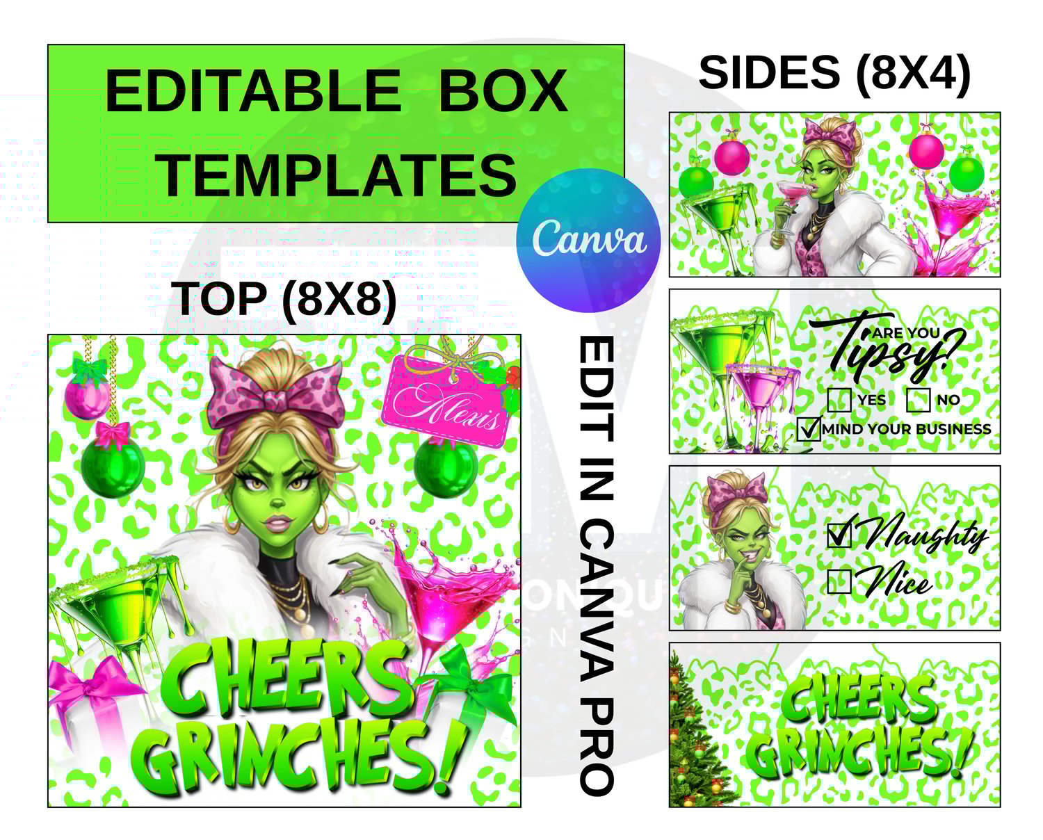 Create a custom holiday surprise with this Grinch Box Design Template! This versatile digital file is perfect for transforming any cardboard box into a festive gift reveal. The template allows you to easily drop in your own photos, change text (like a name), and customize the look of the top and all four outer sides.