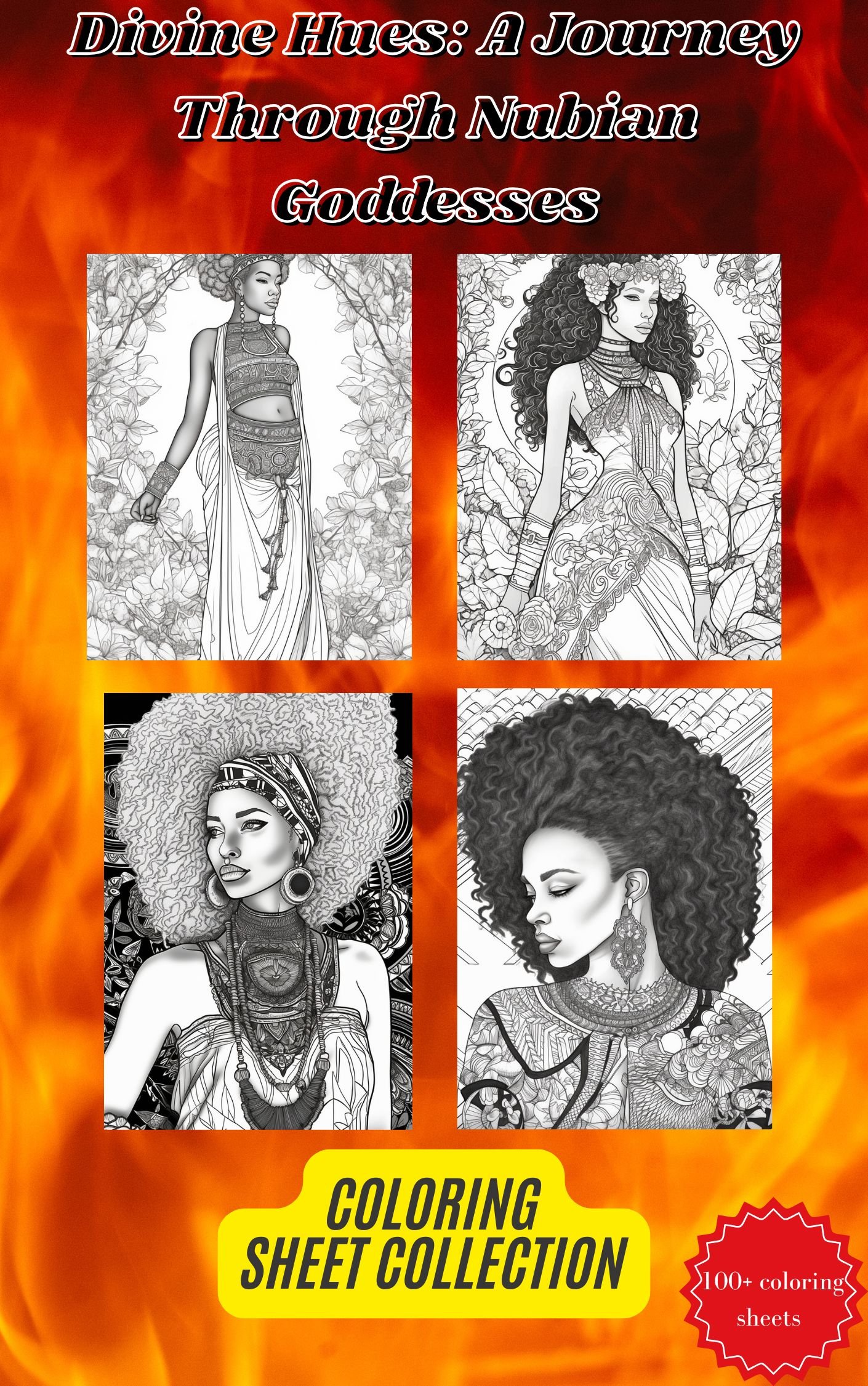 Divine hues: A Journey through Nubian Goddesses coloring sheet collection **100+ pgs**