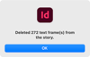 This script allows users to delete all text frames from a selected story with options to either delete frames only or copy the entire story content to clipboard before deletion.