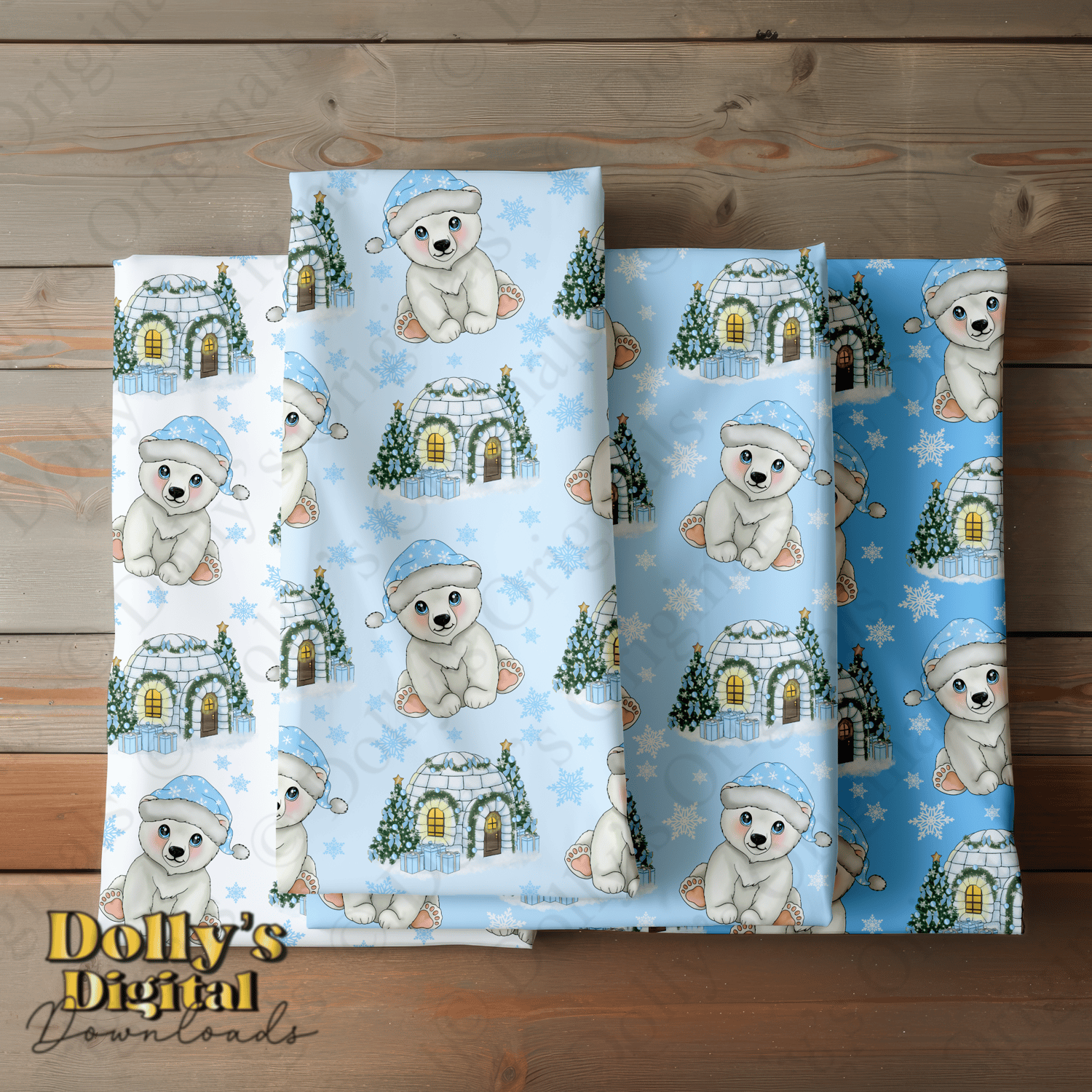 Includes Four Frosty Polar Bear Seamless Patterns Clipart PNG (4 PNG’s)