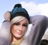 A lovely old school style pompom hat with cables. This hat is knitted with the main cable section first, adding the ribbing band after, giving a lovely purl bump around the top of the band.