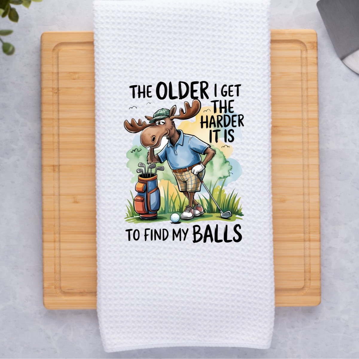 The Older I Get The Harder It Is To Find My Balls Golf Sarcastic Kitchen Dish Towel