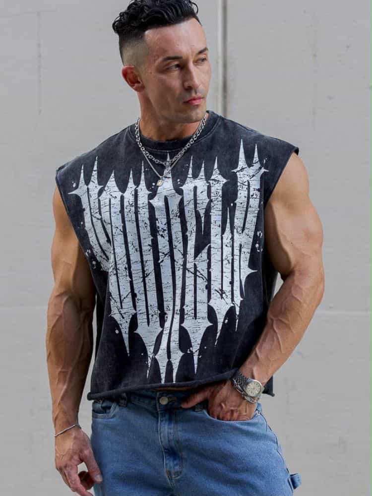 El corte sin mangas libera el movimiento y mantiene el cuerpo fresco, mientras que el diseño limpio le da una vibra minimal, masculina y directa.