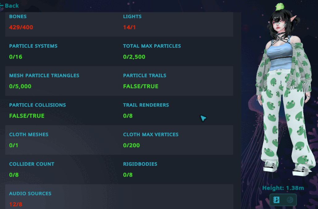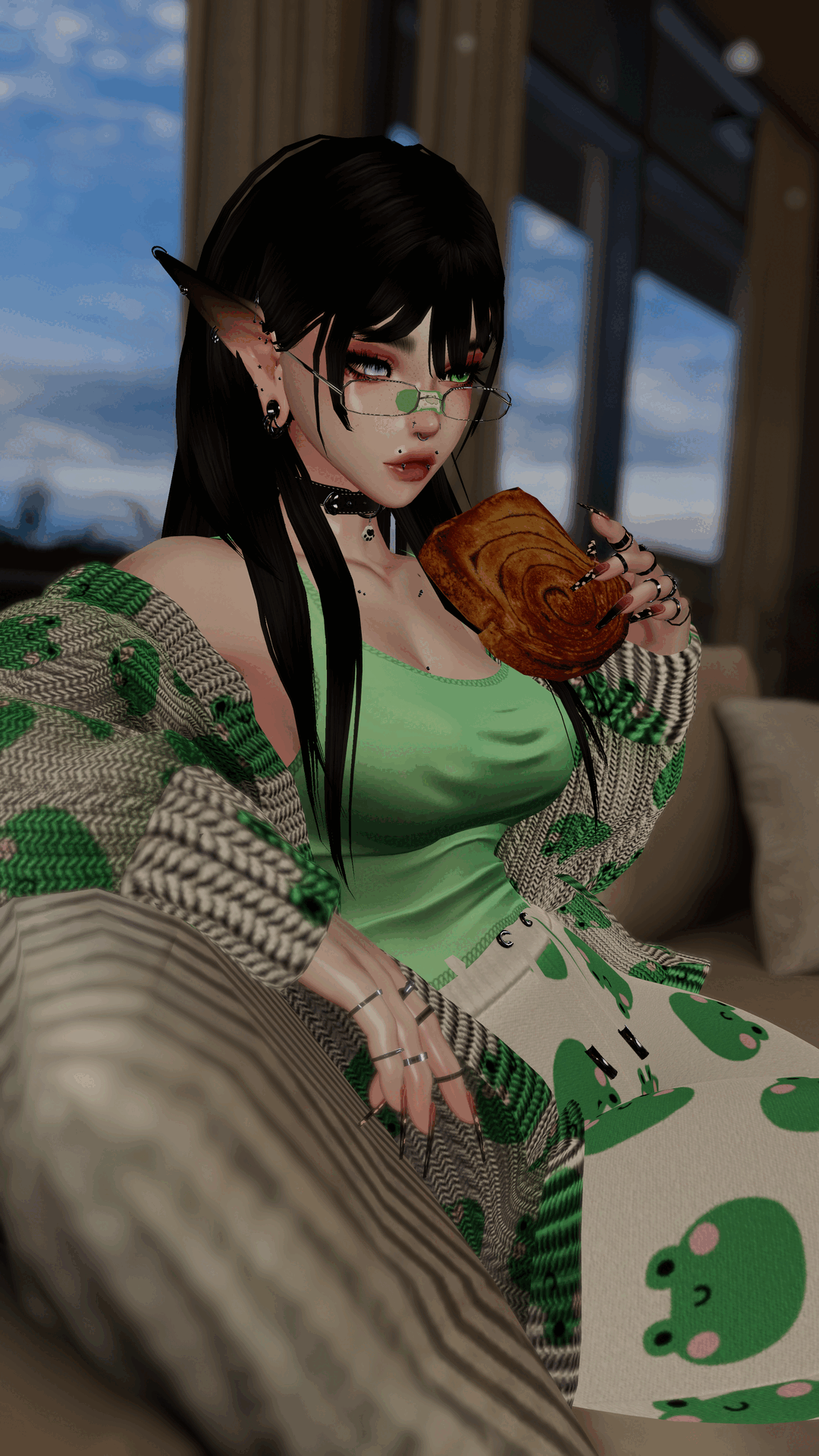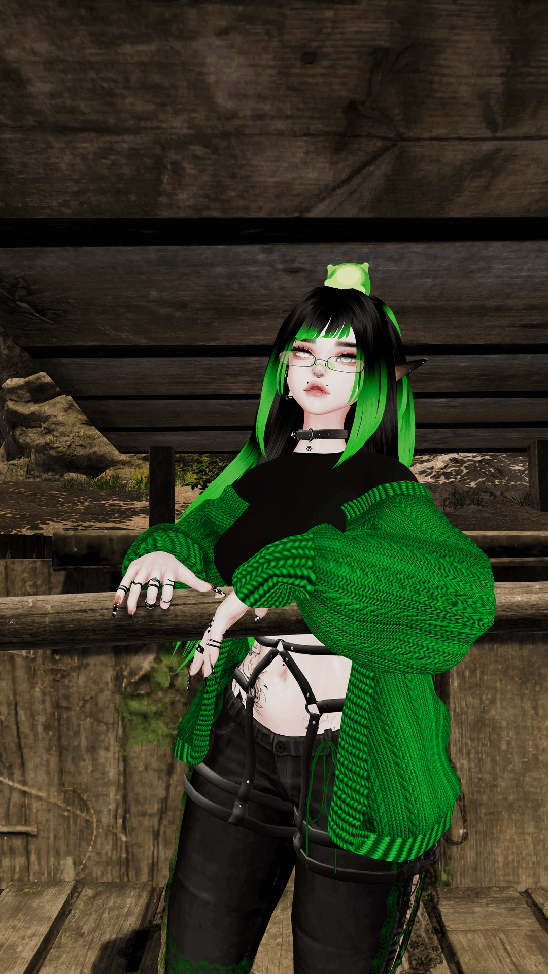 Accessories (17) Top Harness, Bottom Harness, Arm Fishnets, Leg Warmers, Lingerie Harness, Glasses, Frog, Bracelets, Rings, Body Piercings, Face Piercings, Anklet, Bandaids, Collar, Frog Hat, Frog Plushie.