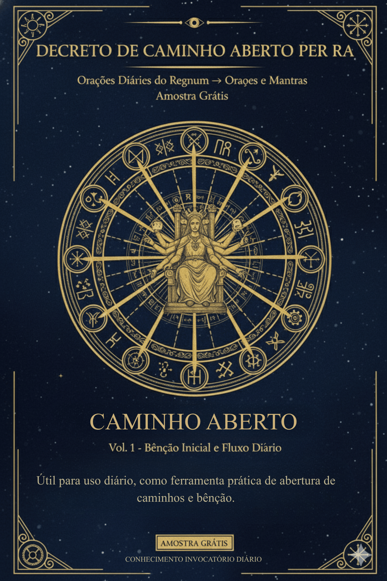 Este poderoso documento, parte da Coleção Codex Solaris, apresenta um Decreto Solar projetado para uso diário, focado na eliminação de bloqueios e na abertura de portais de vida e prosperidade. O decreto invoca a Luz de Ra (o Sol no Codex Creatoris) como o poder que rasga as sombras, alinhando a vontade do praticante com a força organizadora do El Elyon. É um manual prático para a bênção matinal e a afirmação de um destino justo e próspero, integrando a cosmogonia egípcia à doutrina do Regnum Ex Nihilo.
