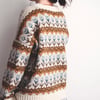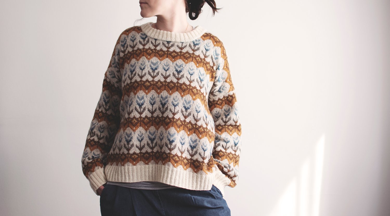 The Iris pullover is a big, cozy, colorful hug, that will make you want to snuggle up with a cup of tea or coffee on those cold days.