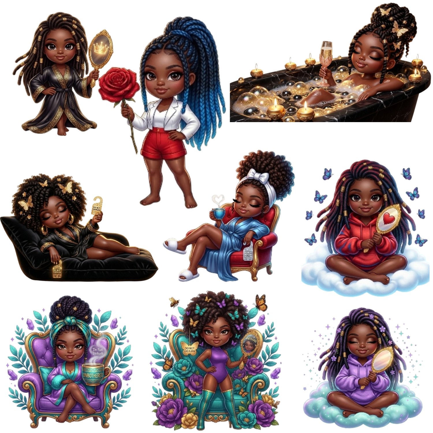 3D Luxury Melanin Chibi Clipart Bundle – Black Woman Self-Care & Soft Life Aesthetic