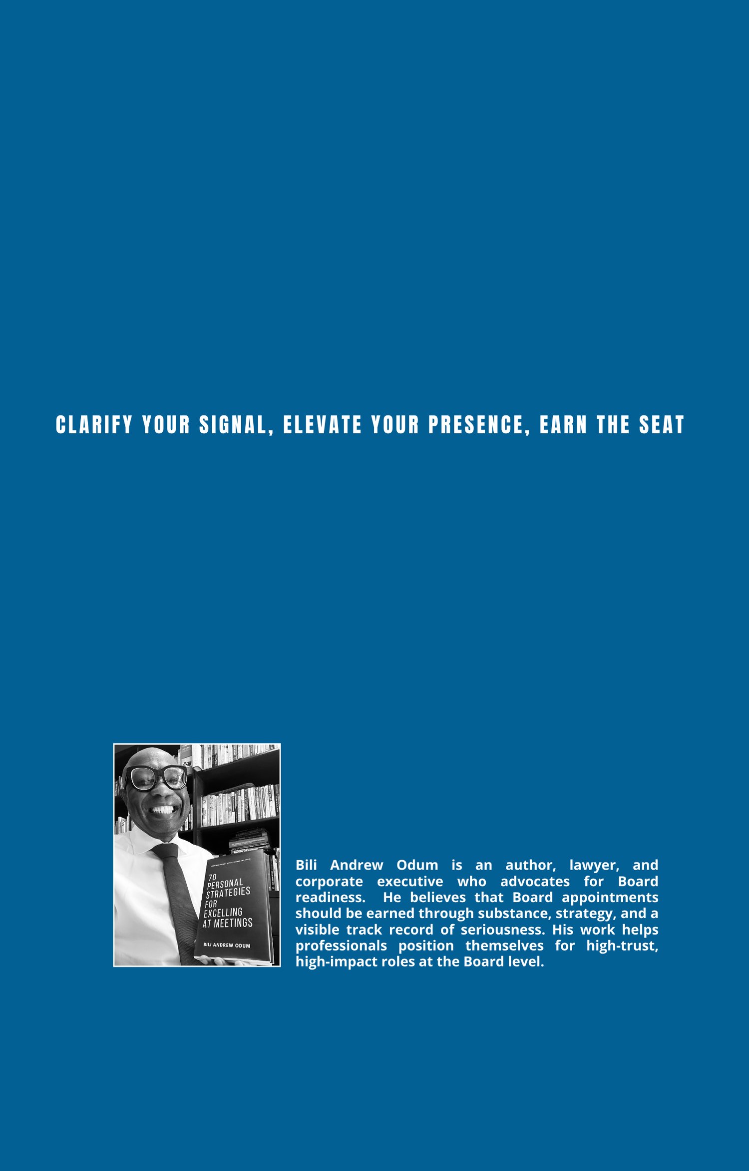 This book is for leaders who are ready to contribute at the highest levels of governance, whether you are seeking your first appointment or looking to elevate the quality of the Boards you serve.