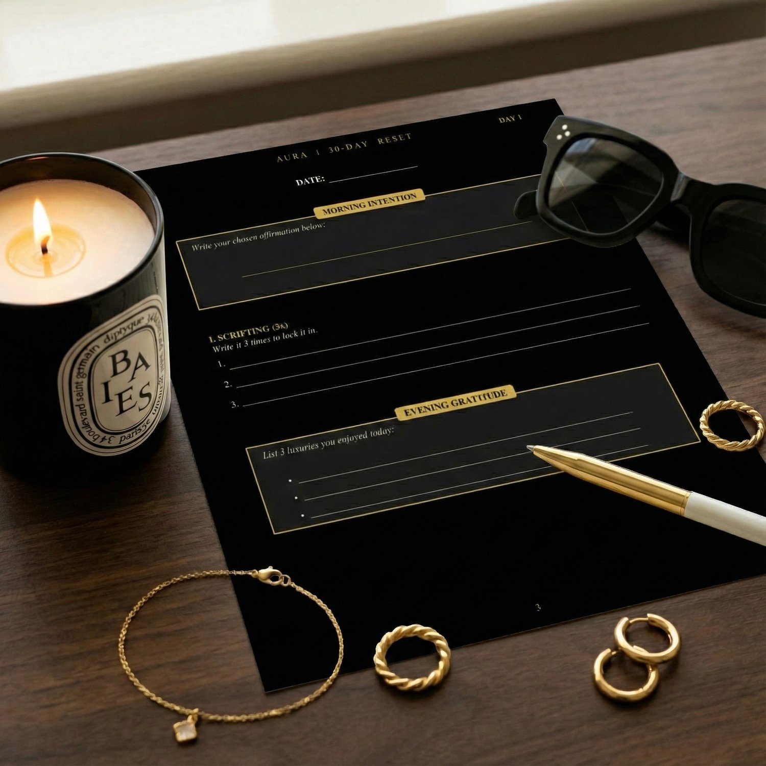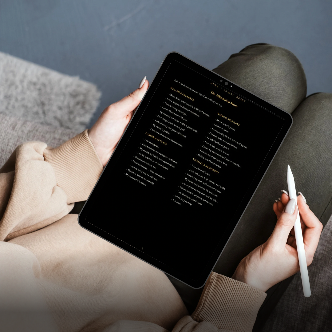 Welcome to AURA, a 30-day digital guided journal designed for the exceptional. This is not just a planner; it is a subconscious architectural tool created to realign your frequency with wealth, success, and radical self-love.