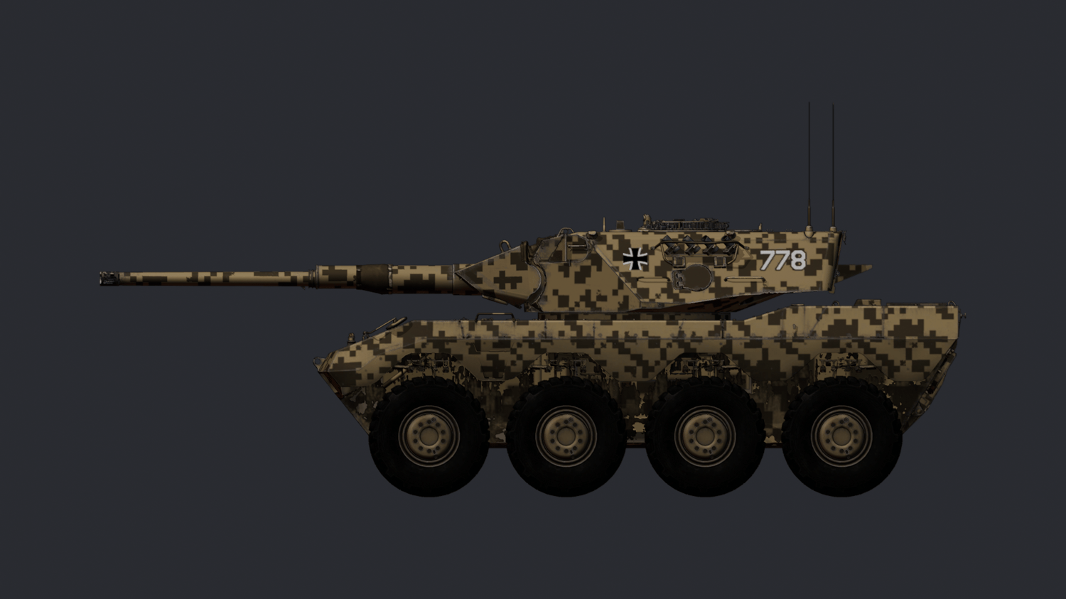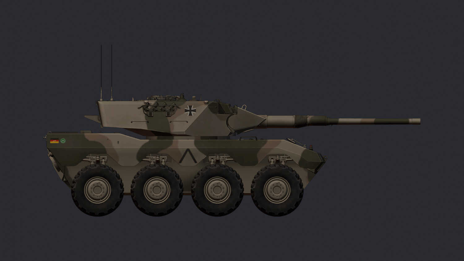 The Radkampfwagen 90 was a German prototype for a heavy armored car developed in the late 1980s, designed to combine the firepower of a main battle tank with the mobility of a wheeled vehicle. This experimental vehicle was armed with a 105mm smoothbore gun and featured a unique eight wheeled chassis, but the project was ultimately canceled in favor of other armored vehicle programs.