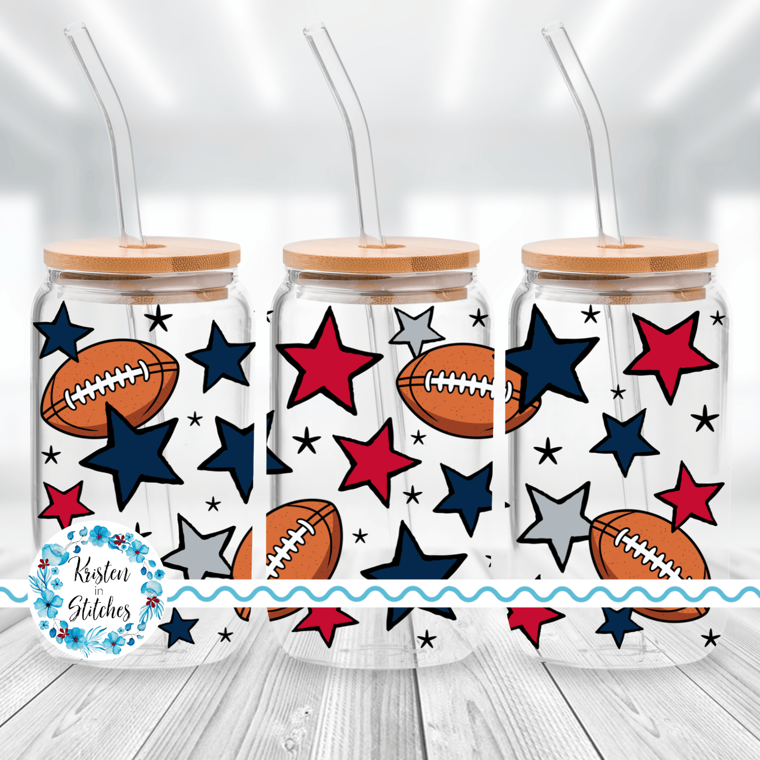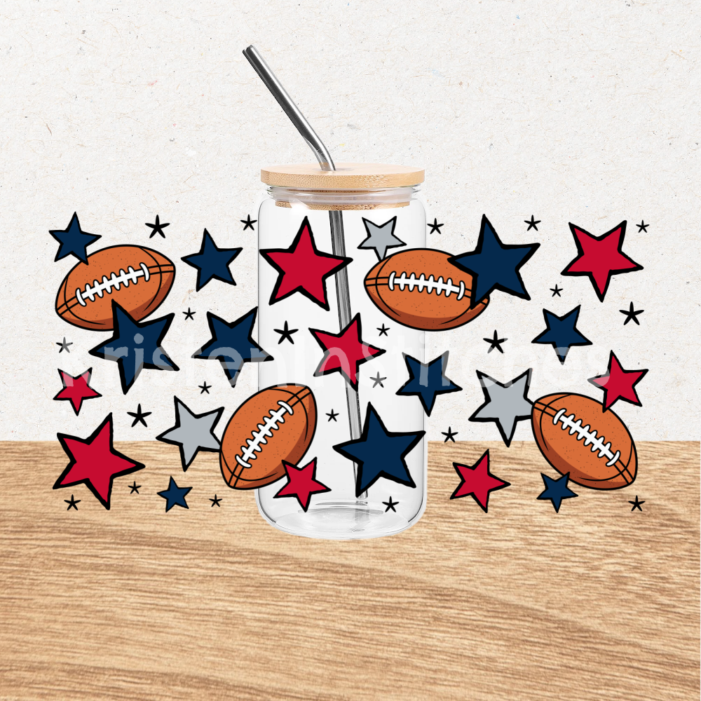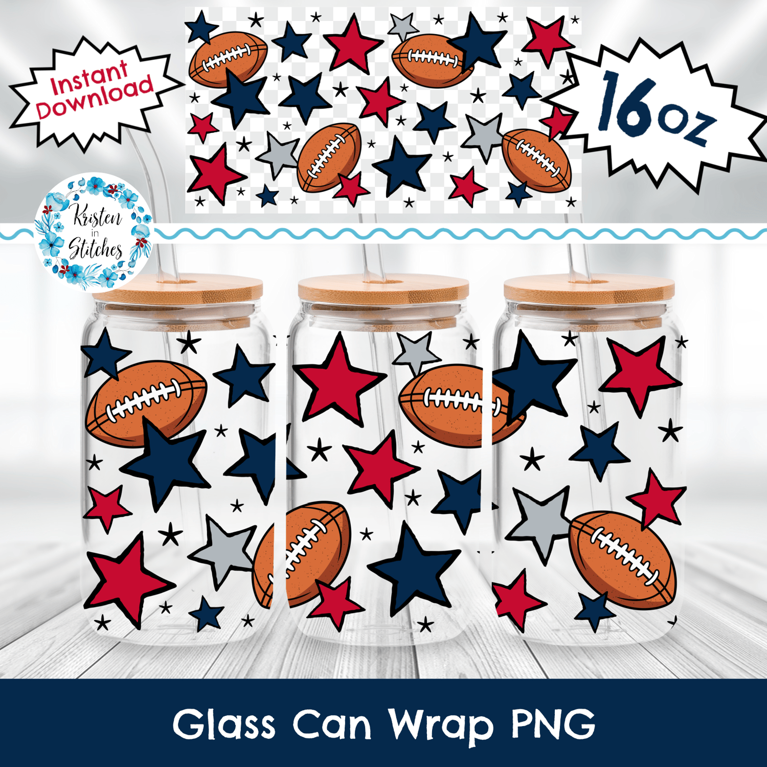 Football Team 16 oz Glass Can Wrap Transparent PNG, New England Patriots Colors Red Navy and Silver Grey