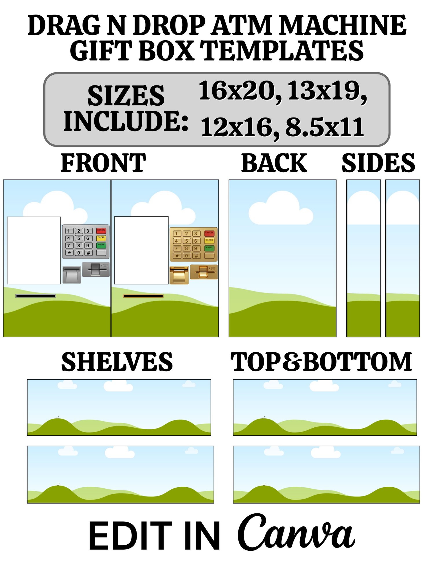 Looking for the "WOW" factor for your next gift? This Drag & Drop Canva template allows you to create a realistic, personalized ATM gift box perfect for birthdays, graduations, or a unique way to give cash. Simply upload your favorite photos or patterns, drop them into the frames, and print!