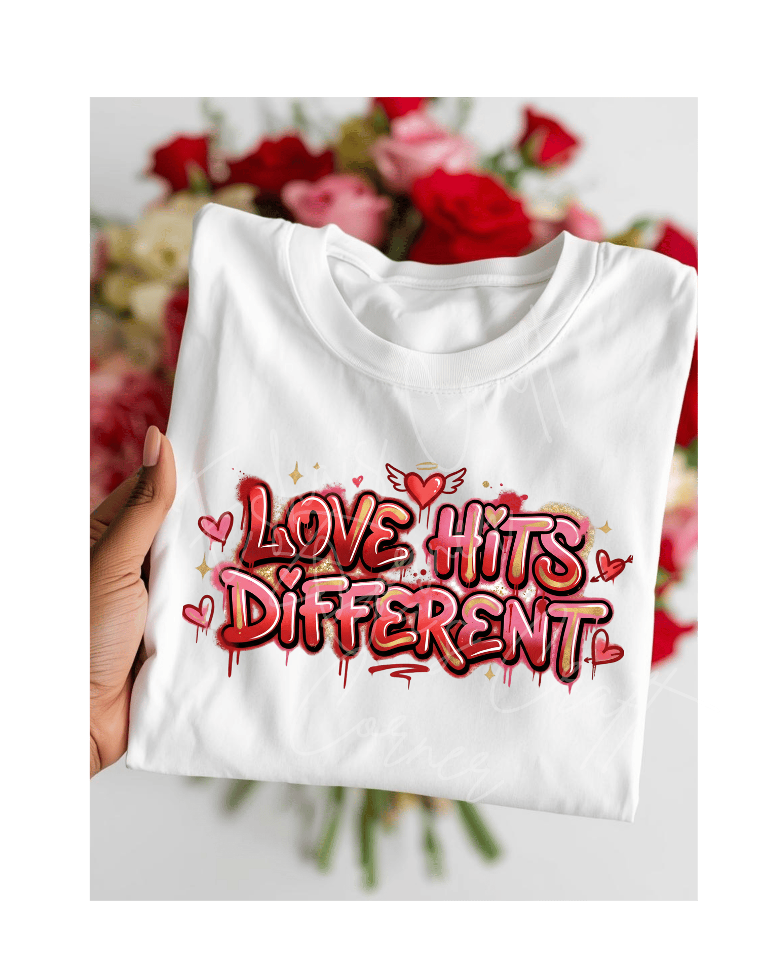 This bold Valentine’s Day design features vibrant drip-style typography, heart accents, and a modern street-art inspired aesthetic. Perfect for anyone who loves expressive Valentine statements, self-love energy, and trendy designs that stand out.