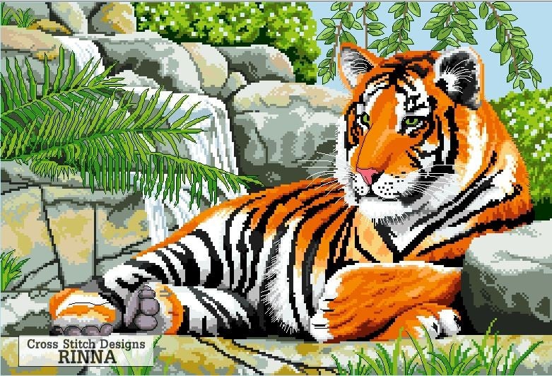 Wildlife Design TIGER Resting - Cros Stitch PDF Pattern