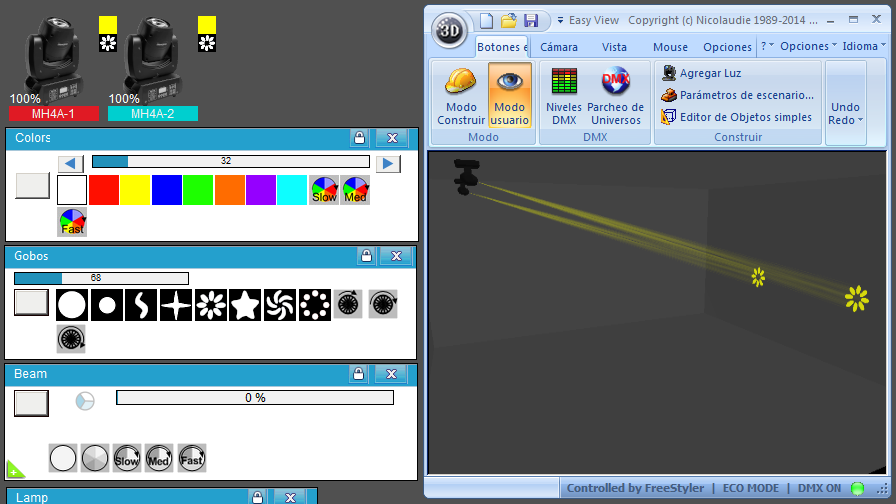 - Esta librería NO reemplaza al Fixture de Freestyler o QLC+, sólo es para ver la representación 3D. Es decir, HAY QUE TENER YA EL FIXTURE DE FREESTYLER o de QLC+ para controlar el equipo real.