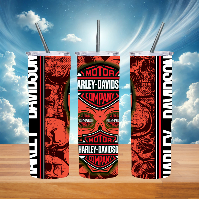 Rev up your drinkware collection with this rugged and bold 20 oz sublimation tumbler in a striking rust tone. The design features a detailed skull graphic, the iconic Harley Davidson logo, and "Harley Davidson" text running vertically down the side for a powerful statement piece. Perfect for Harley fans who want to showcase their love for the open road with a tumbler that’s as tough as their ride.