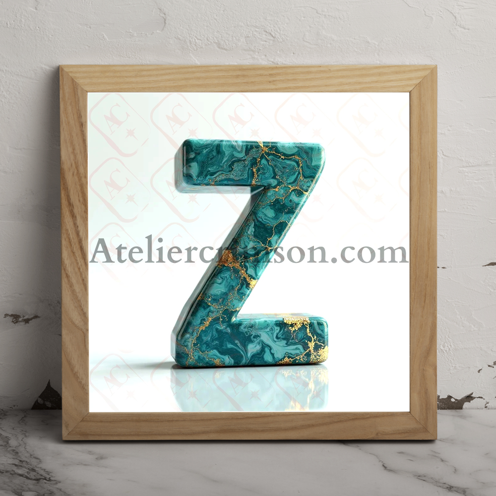 The letter Z marble blue green gold download Now this high quality AI-generated image, perfect for adding a touch of tranquility and creativity to any space.