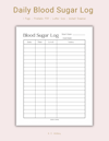 Printable Minimalist Style Blood Sugar Log Planner Journal Page