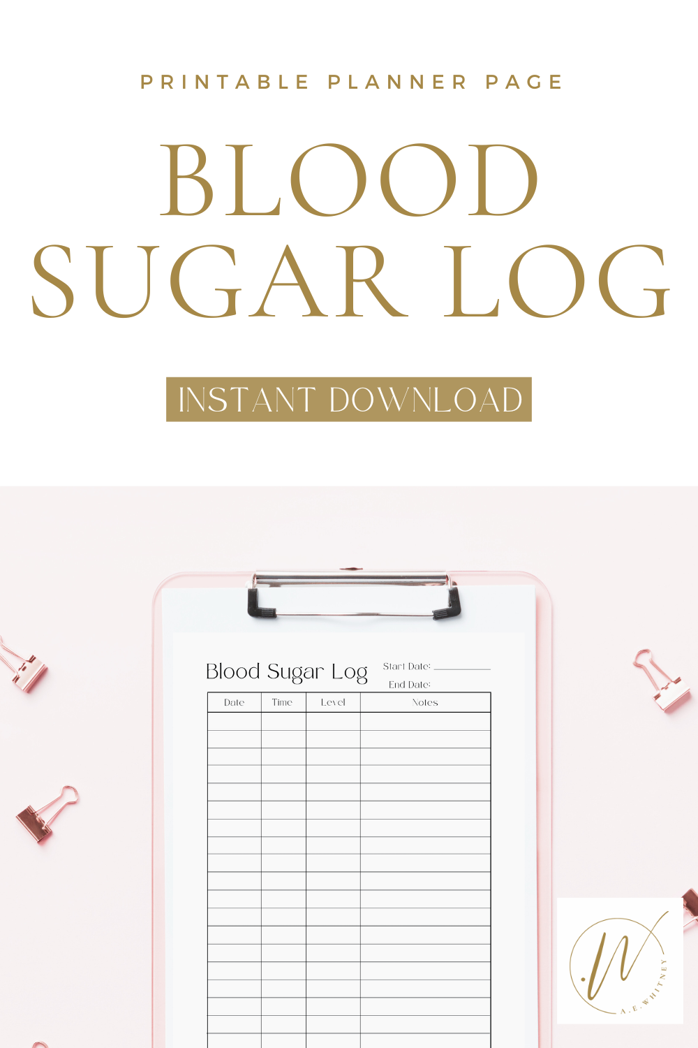 Minimalist Style Blood Sugar Log | Printable Planner Page