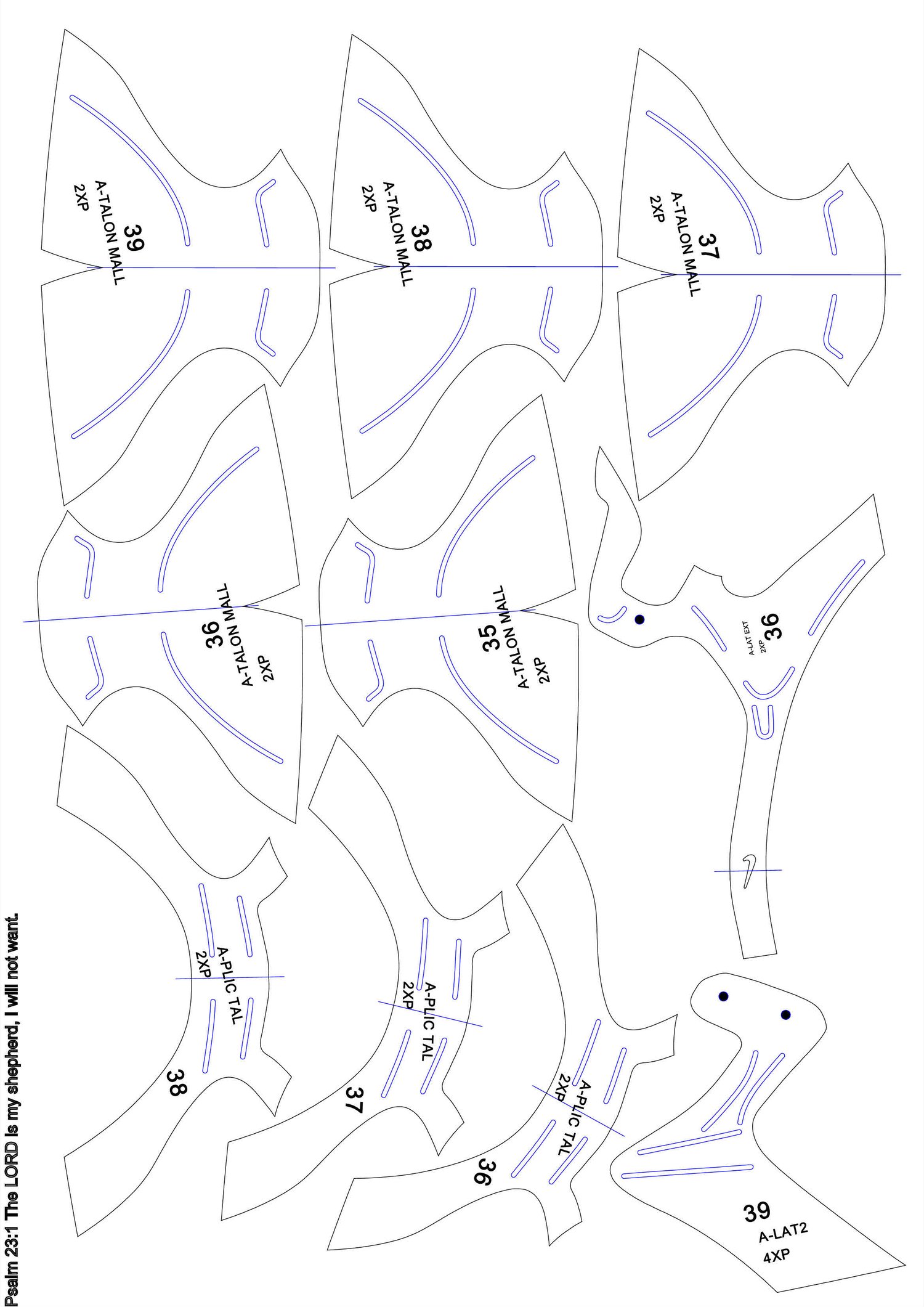 patrones en PDF hoja A3 conprimido WinRar, serie del 34 AL 39.