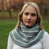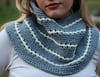 This quick-to-knit cowl is tapered and shaped as you knit from the top down. Eyelet rows in a contrasting color liven up the cozy garter stitch.