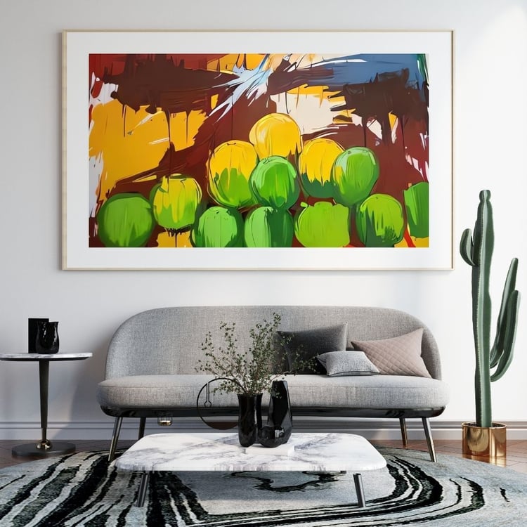 This piece was created digitally, giving it a smooth and modern finish rather than a textured, hand-painted look. Digital creation means the colors are consistent, the details stay crisp, and you have the freedom to print it in the way that best suits your space — whether as a bold statement in the living room or a soft accent in the kitchen.