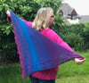 Fistral is a stylish accessory which an be worn as a scarf or as a shawl. The asymmetrical, triangle shape features a beaded edging along one side and a scalloped edging along the other side.