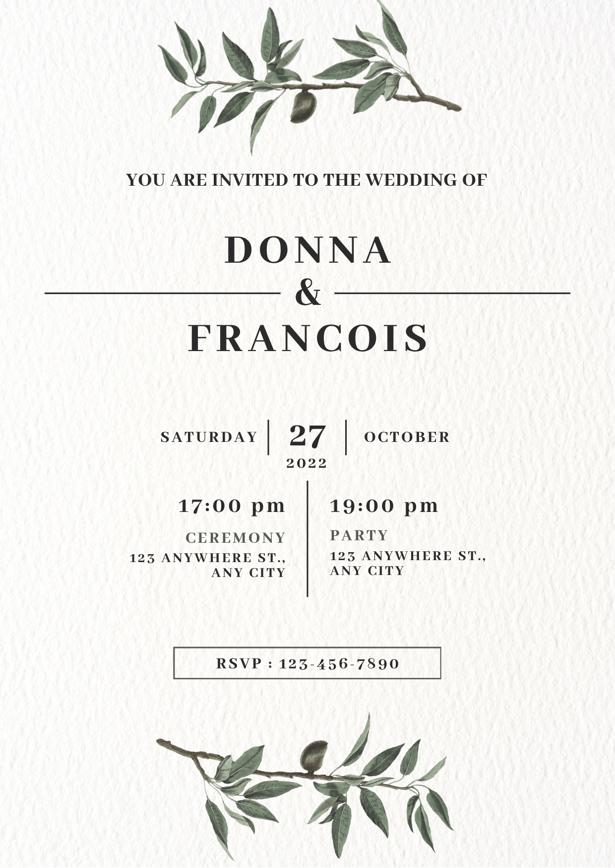 This editable wedding invitation template is perfect for couples who want a simple, elegant, and timeless design.
