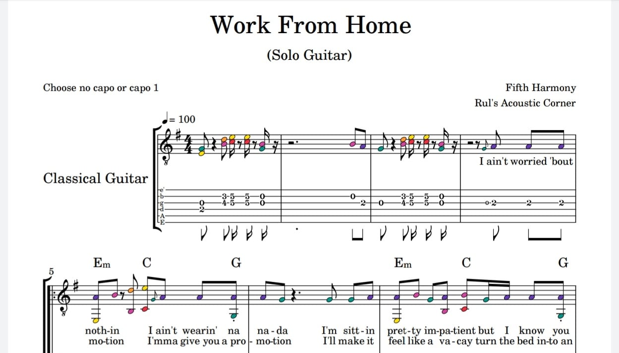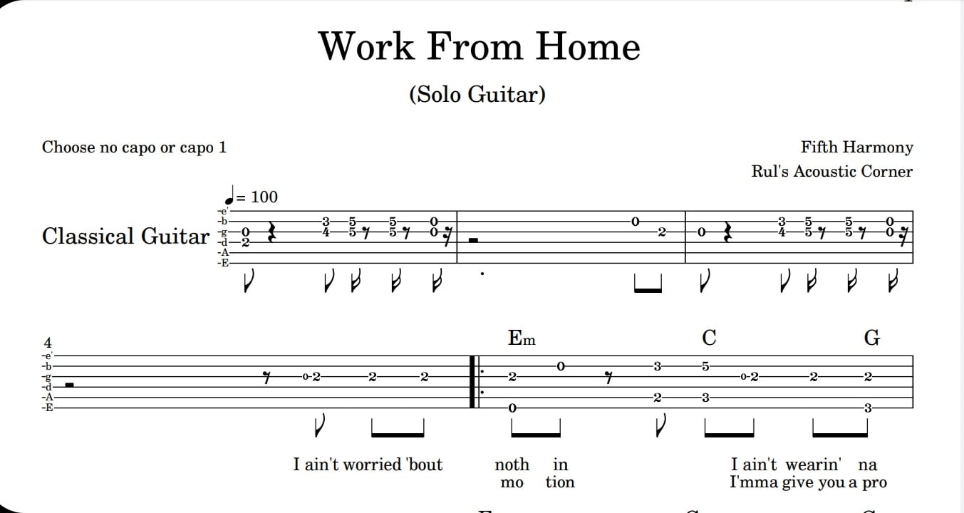Tutorial Instrumental Fifth Harmony - Work From Home Solo Guitar Musical Notes Tabs High Quality PDF Video Download