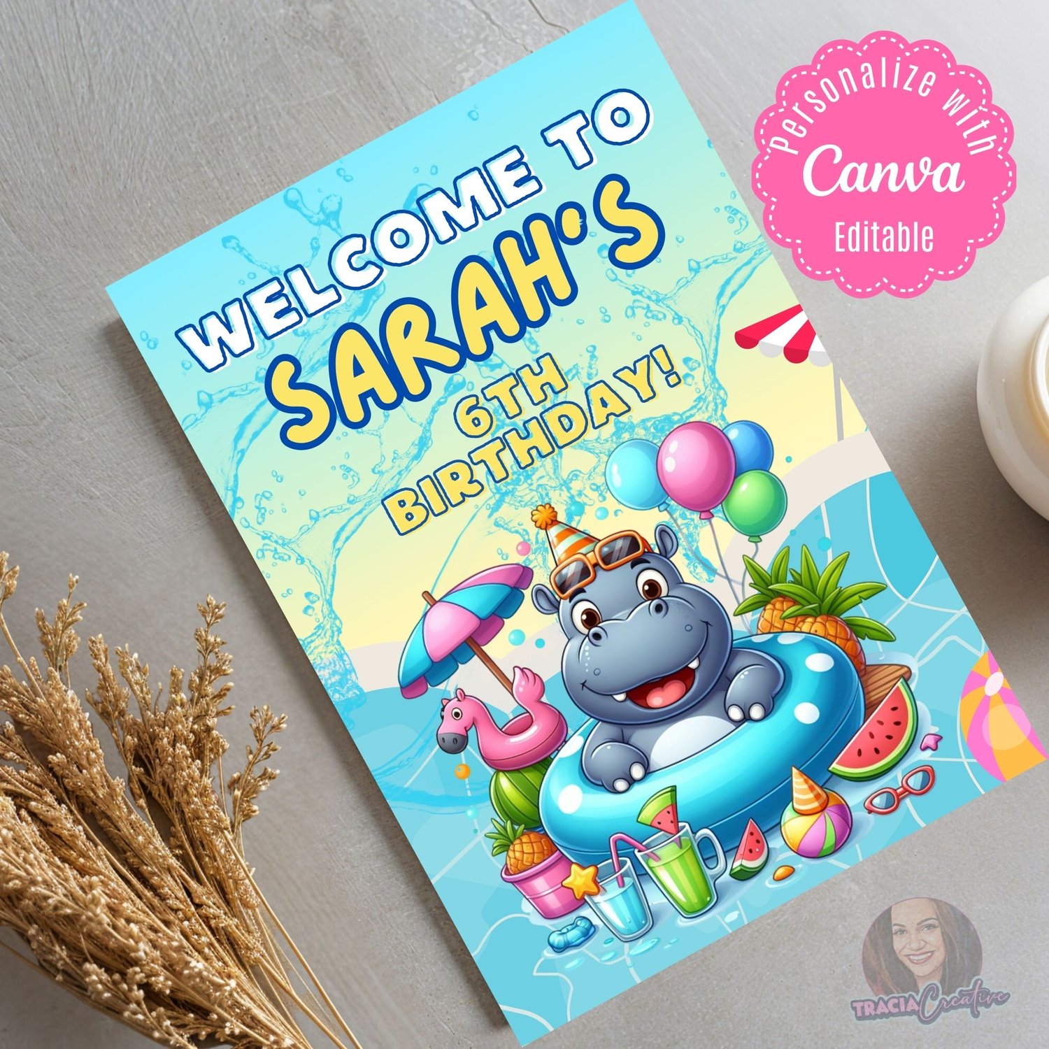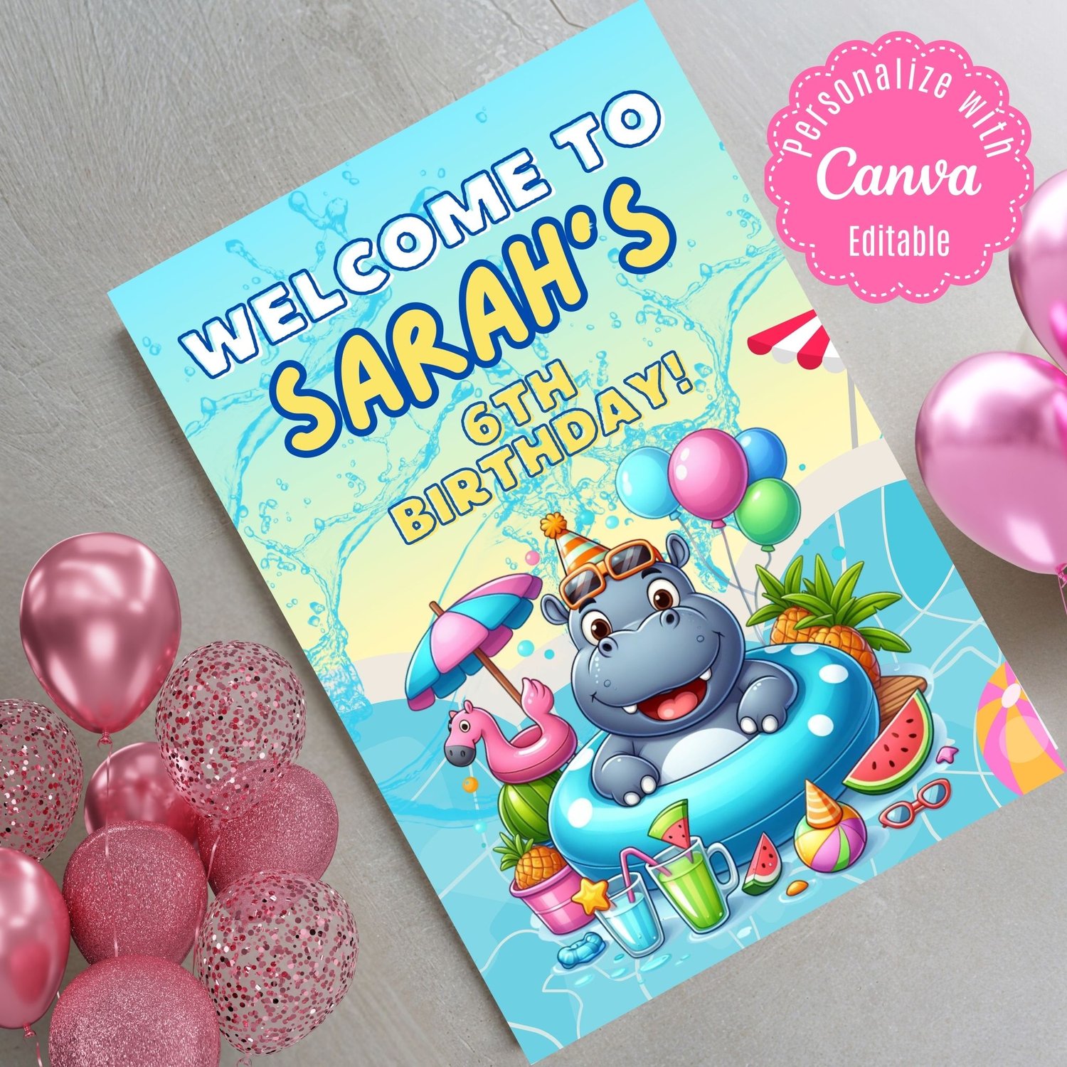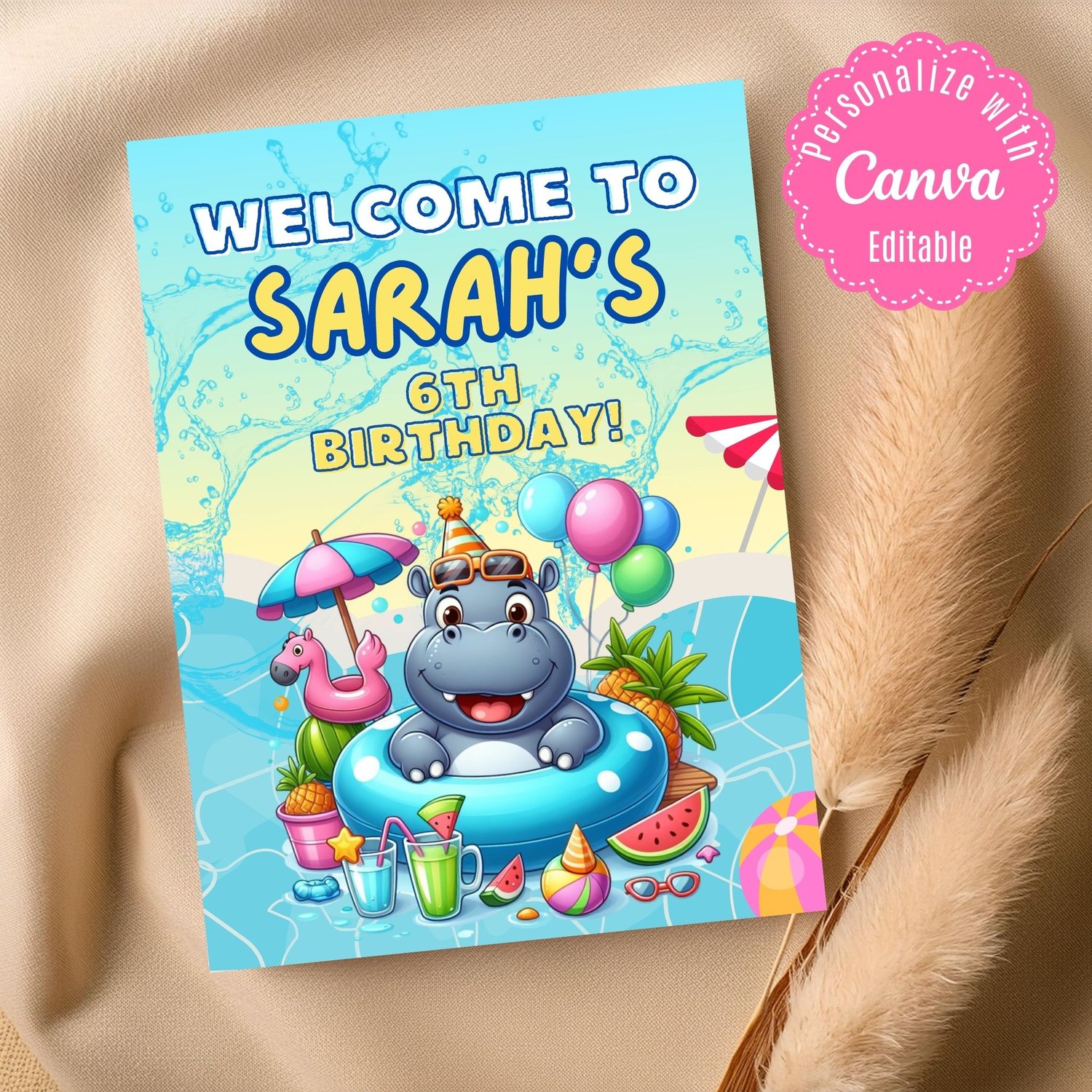 Editable Canva Pool Birthday Party Welcome Sign - Digital Download